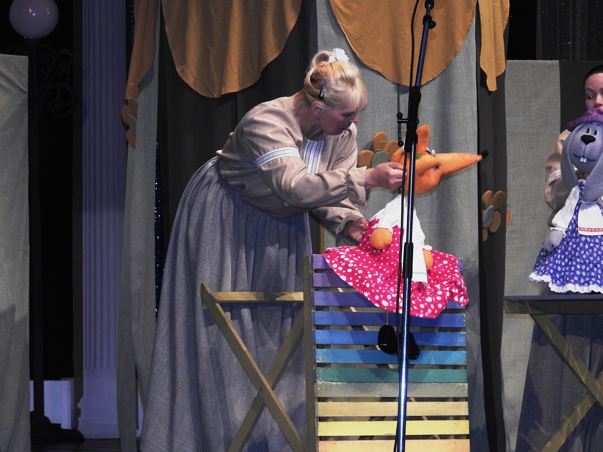 который порадовал зрителей кукольным представлением «Не все зайцы – кролики». Это мероприятие проходило в рамках III Международного фестиваля профессиональных театров кукол «Пушкинские истоки «Кореневщино». Юные зрители с восторгом воспринимали представление и дружно аплодировали.